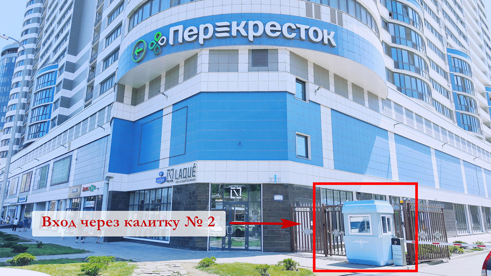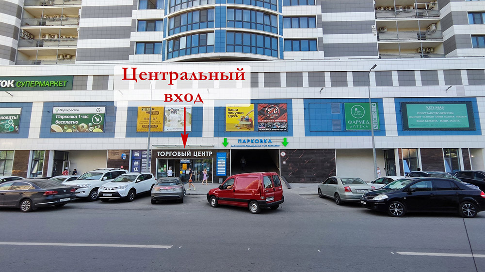 Есть парковка (въезд под шлагбаум), первые три часа бесплатно