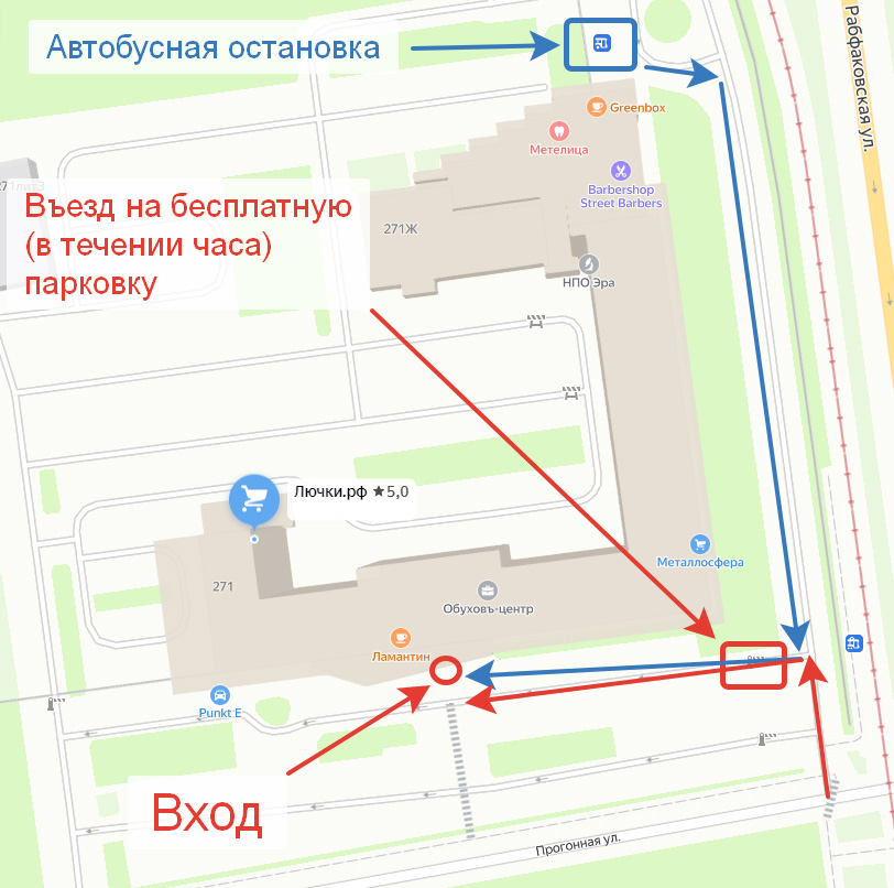 до остановки «Клуб Строитель», далее 4 мин пешком
